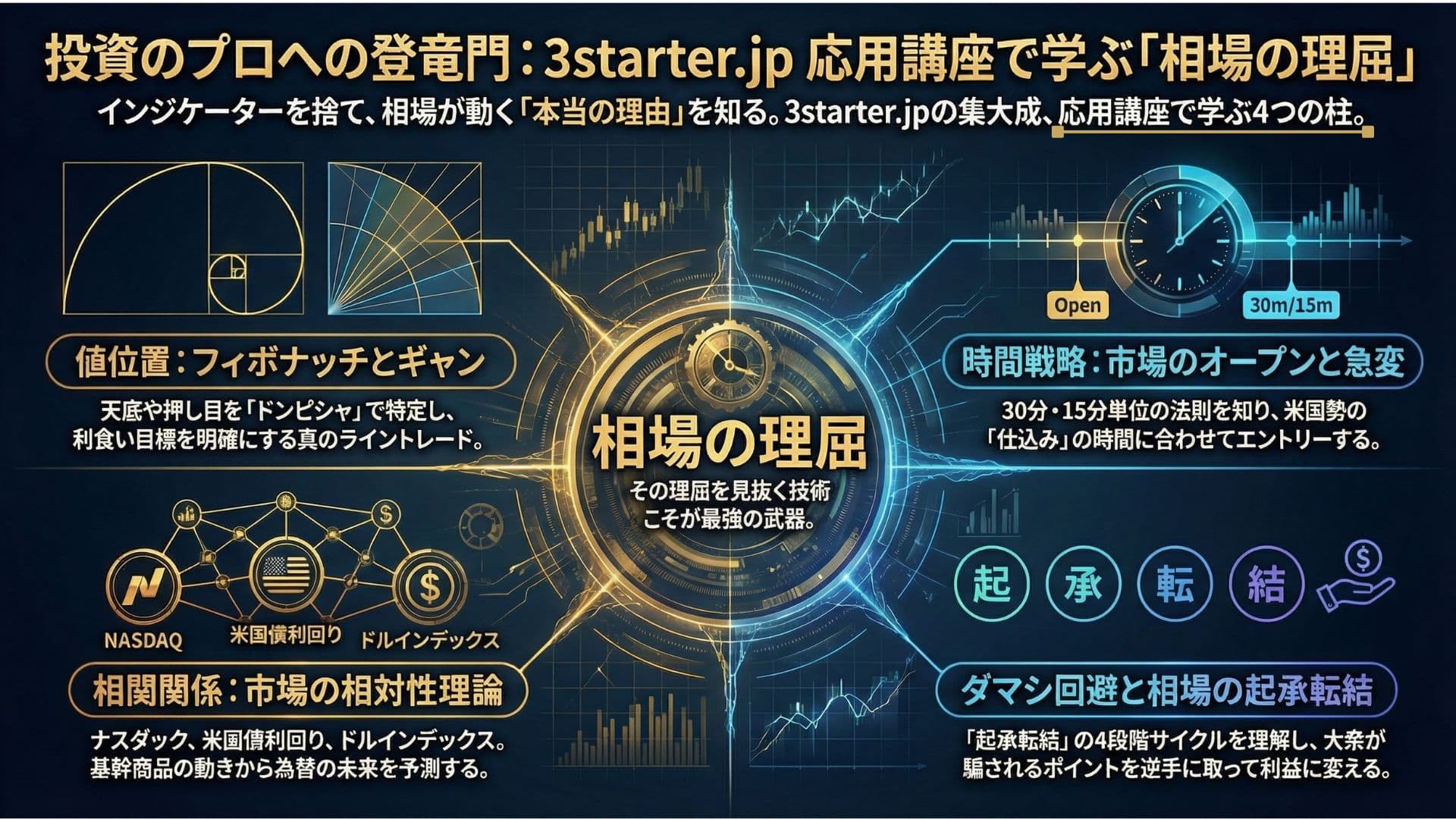 残りのフィボナッチとギャンのツールを学びます。さらに、一番重要なトレードの判断基準の土台部分を学びます。