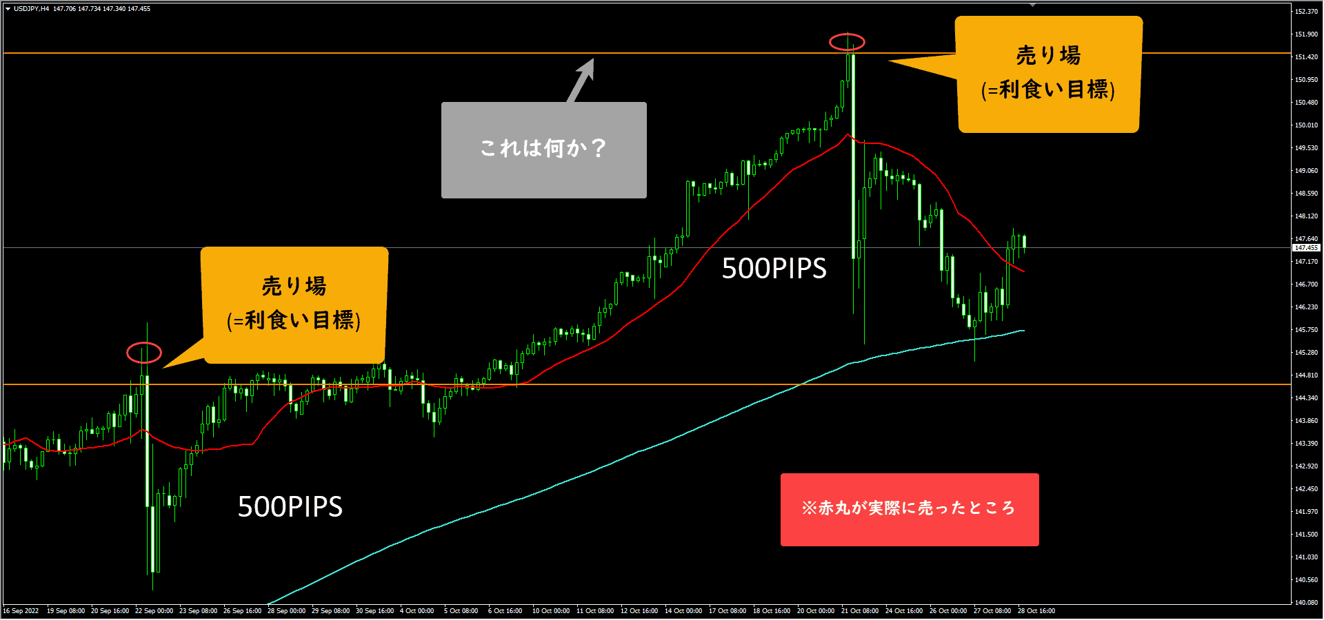 今回はドル円で実際に円買い介入時に天井から売った時の例を載せておきます。