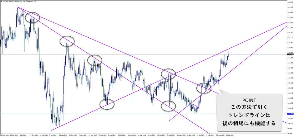 どこからどう引くべきなのか。つまり「今後の値動きに対しても機能するラインの引き方」を見抜けるかが重要です。