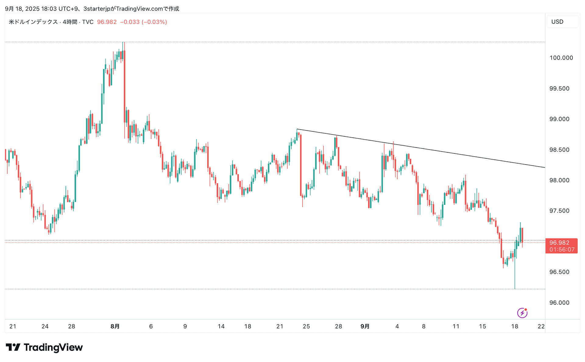 次に、「トレンドラインを引いたチャート」を見てみましょう。