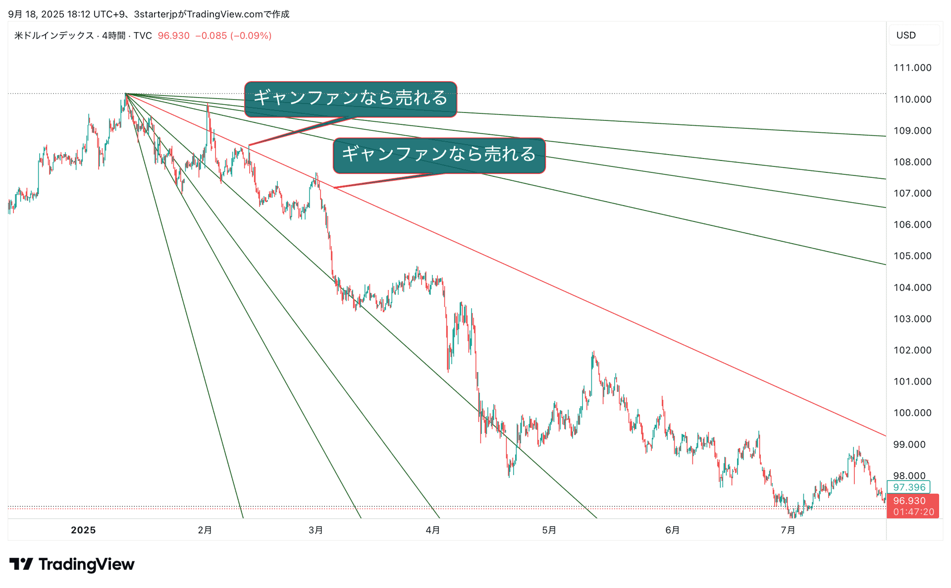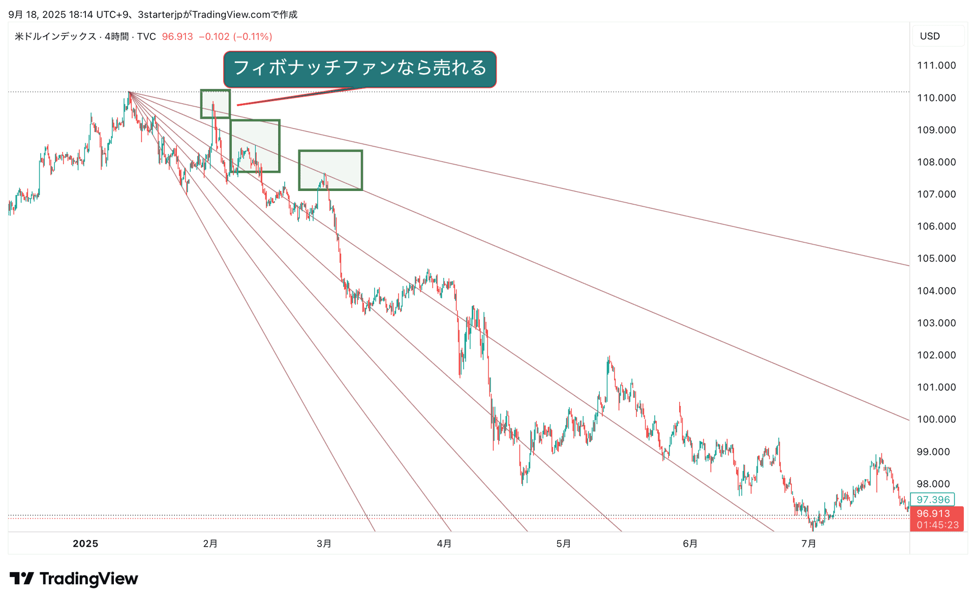 5. ギャンファンとフィボナッチファンではいつも二番天井で売れる