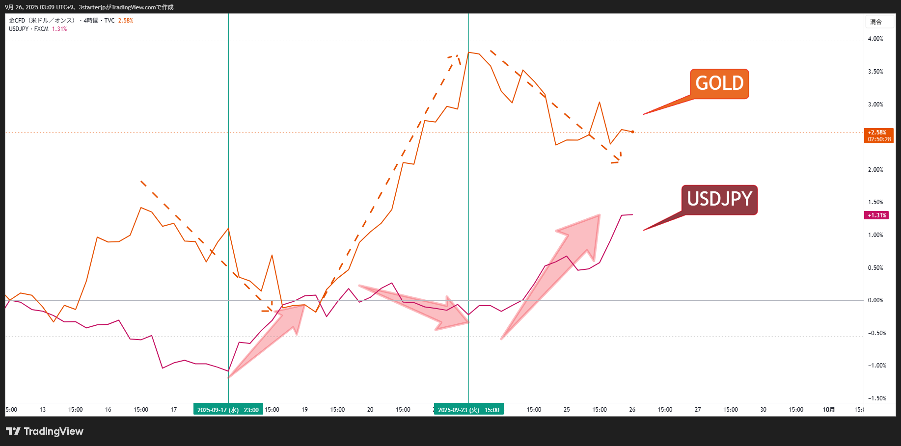 そんな時は金とドル円の逆相関関係に、多少の揺らぎが出て来る事も?
