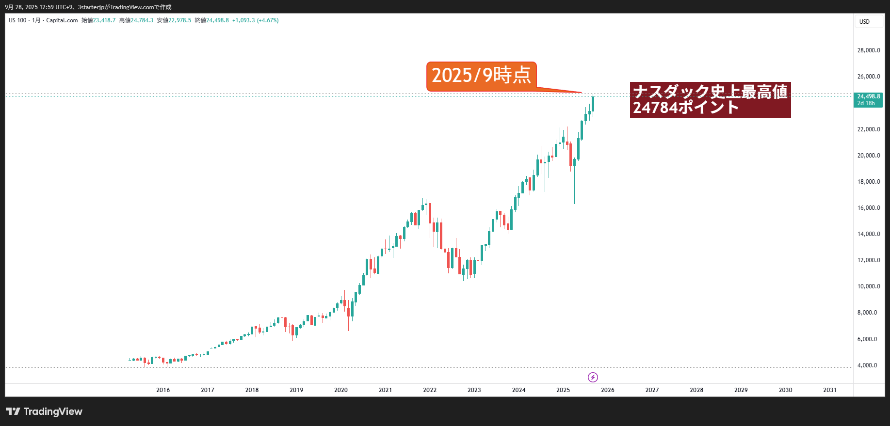 しかしこの時、米国株価指数の代表格であるナスダック100もまた史上最高値にありました。