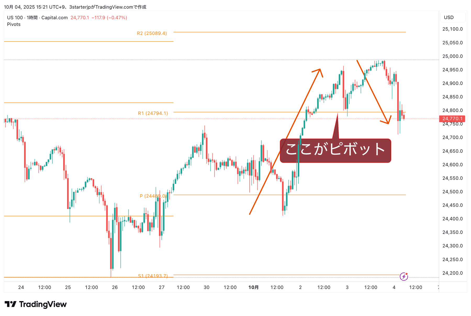 ※「フィボナッチピボット」というものもありますので、普通のピボットとの違いも解説します。